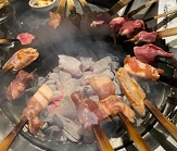 원시적인 숯불꼬치구이 - 고인돌 느낌
