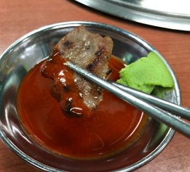 뽈살구이는 불향이 강한편이고 담백했습니다. 소스를 2가지 주시는데 간장소스와 매콤소스 중에서 취향에 맞게 찍어 드시면 됩니다.