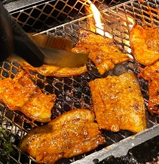소금구이는 두툼해서 그냥 소금이나 와사비, 명란 찍어 먹어도 맛나고, 콩잎에 싸 먹거나 달래장이랑 같이 먹으면 더 맛있어요. 고초장 양념구이는 얇은 고기인데 양념이 맛있습니다. 매운 떡볶이 소스맛이요. 느끼함을 싹 잡아주고 계속 손이 가는 매력이 있어요. 또 오고 싶네요.